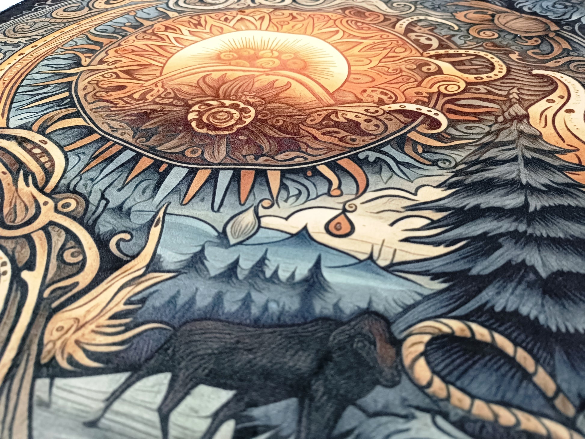 Soft plush Altar tablecloth with sun and winter landscape.