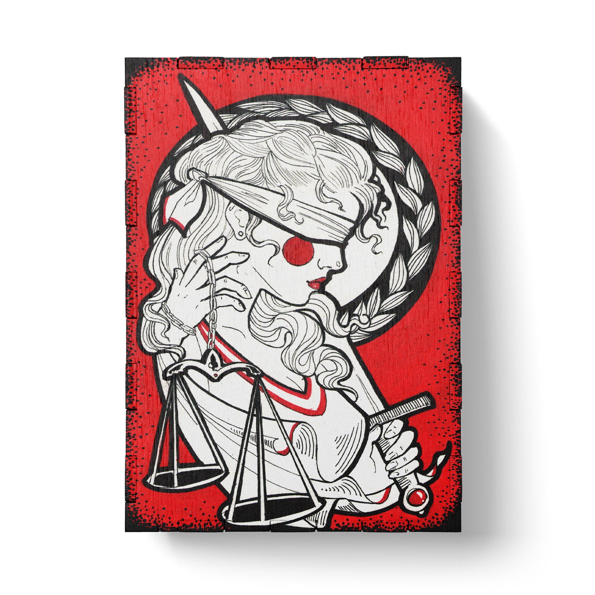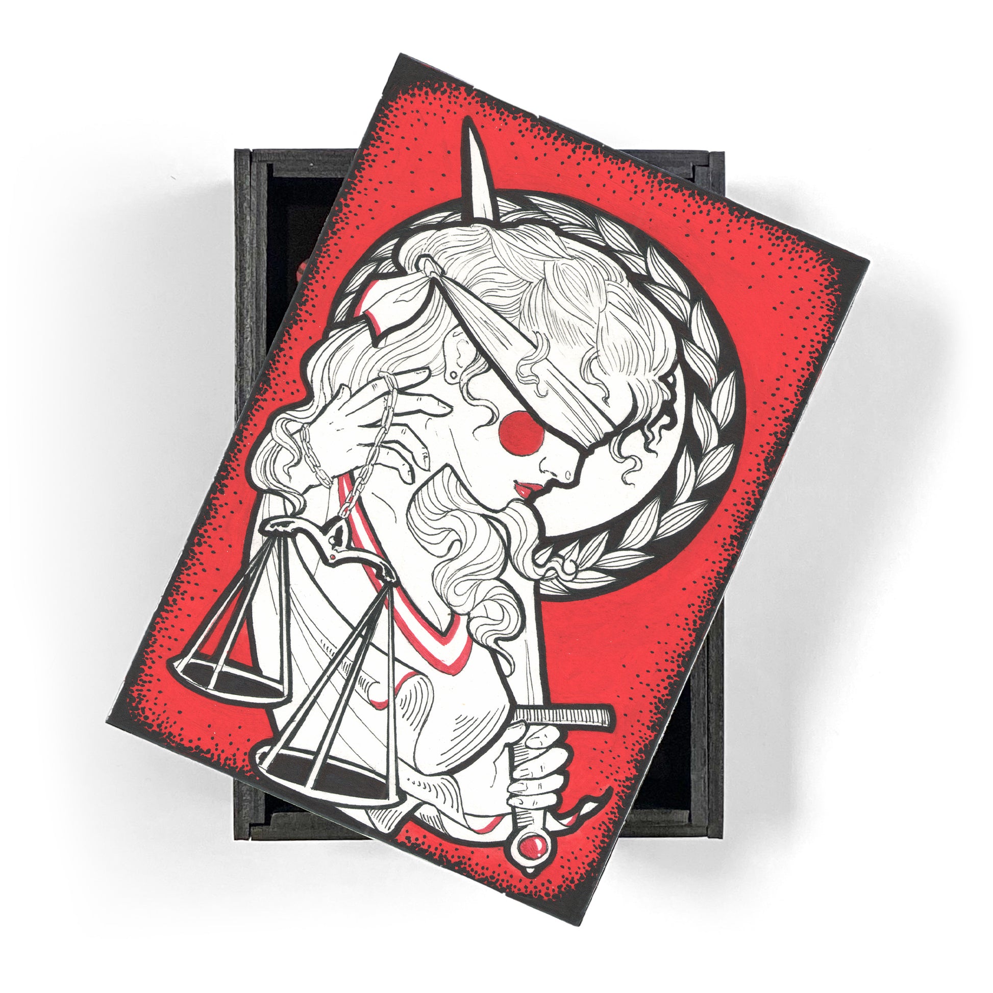 Wooden box for Chervono-Chorne Tarot deck or other small things with beautiful print. Size is 6x4x2 inches (155х110х55 mm). The bottom and lid are covered with suede. Suede color may vary from batch to batch.